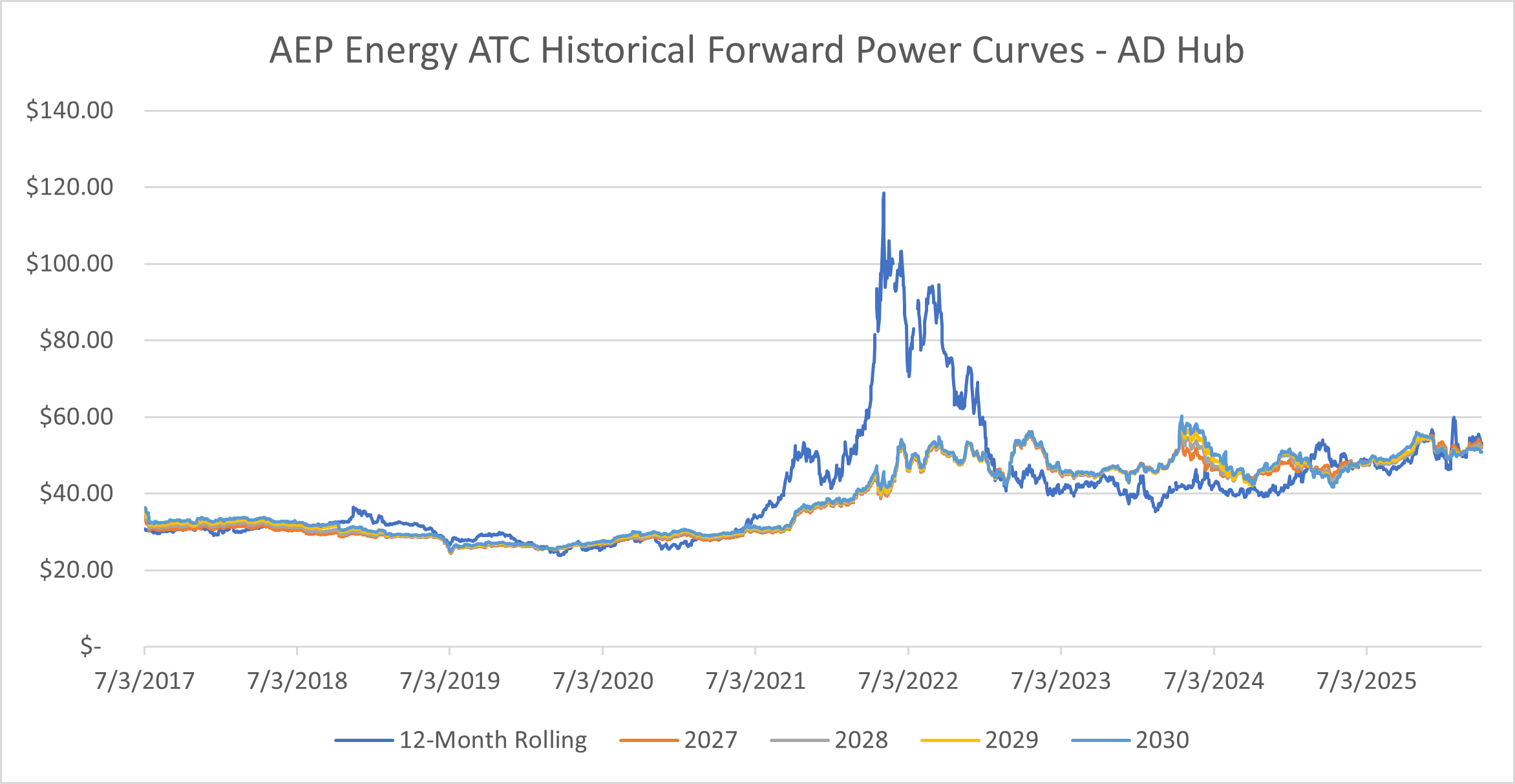 AD Hub On-Peak Forward Price Trend Analysis