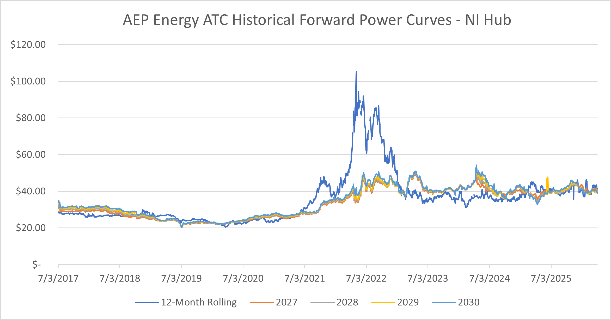 NI Hub On-Peak Forward Price Trend Analysis