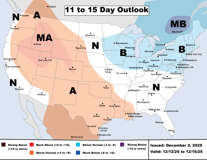 Monday December 1 – Colder revisions to the December forecast supported gains in power and natural gas at the start of the week. ERCOT power prices were mixed with lower temperatures and increased overnight liquidations, driving day-ahead off-peak prices higher.