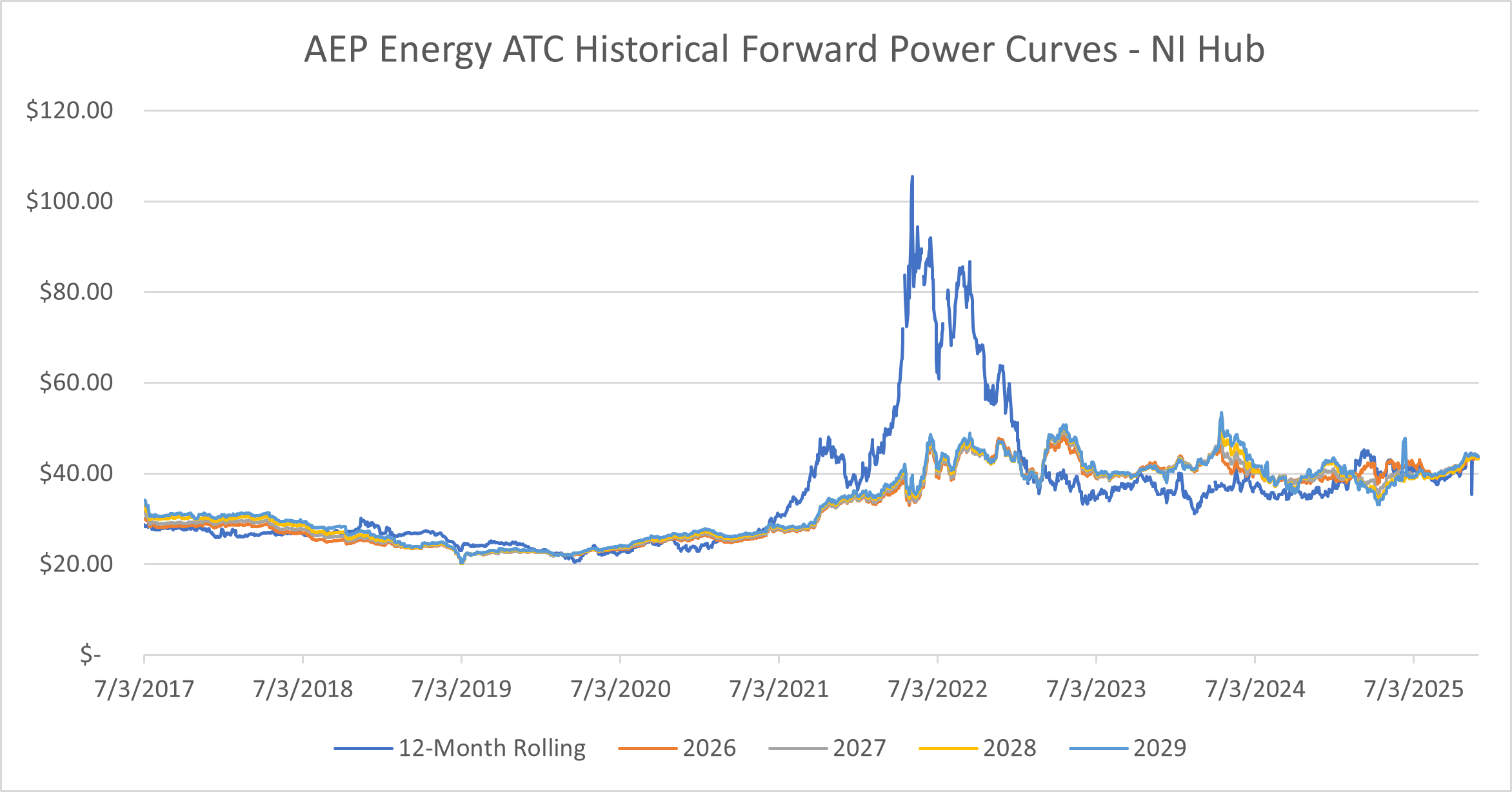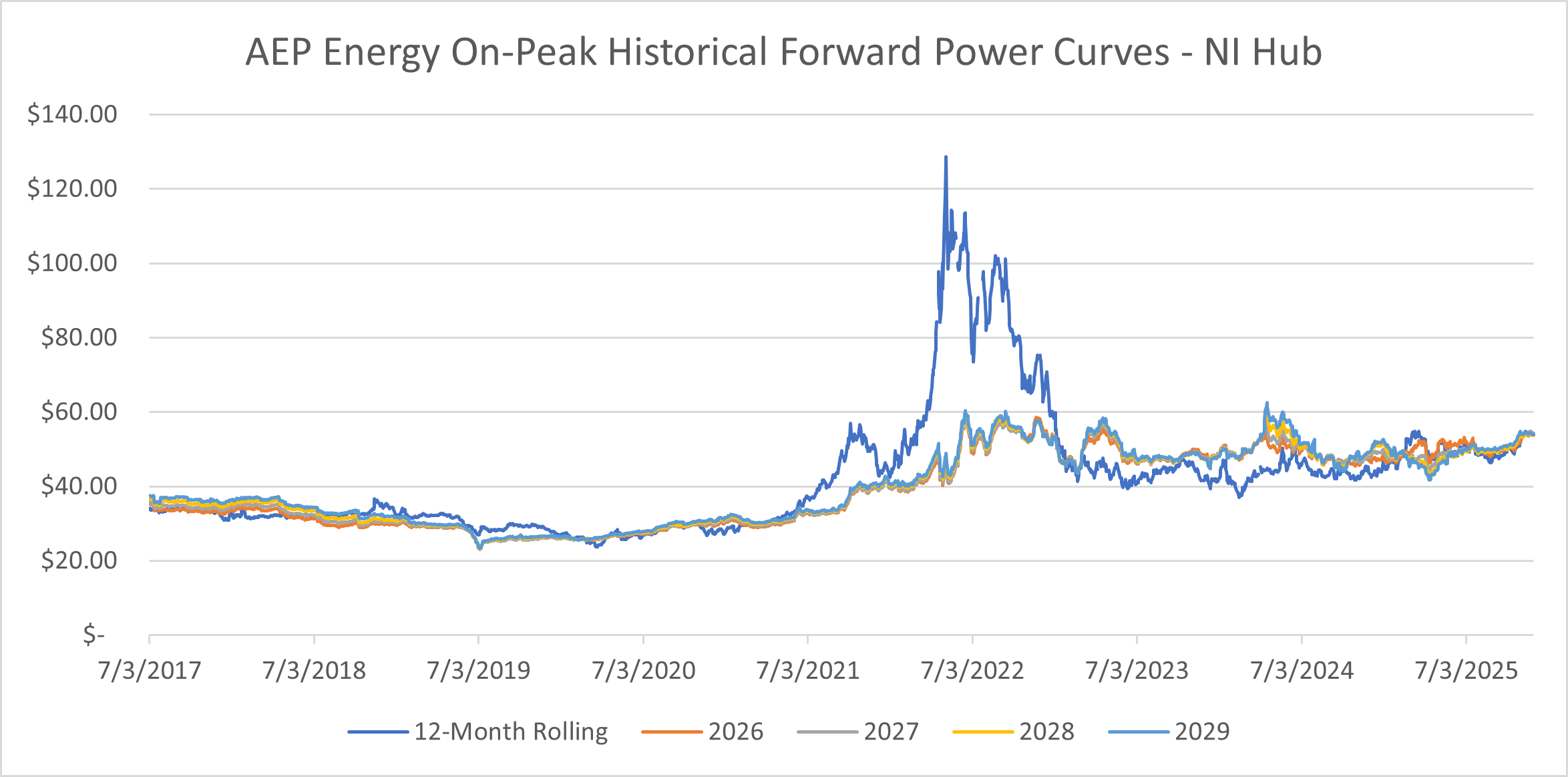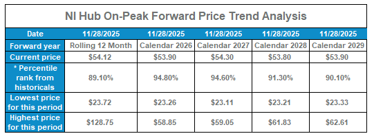NI Hub On-Peak Forward Price Trend Analysis