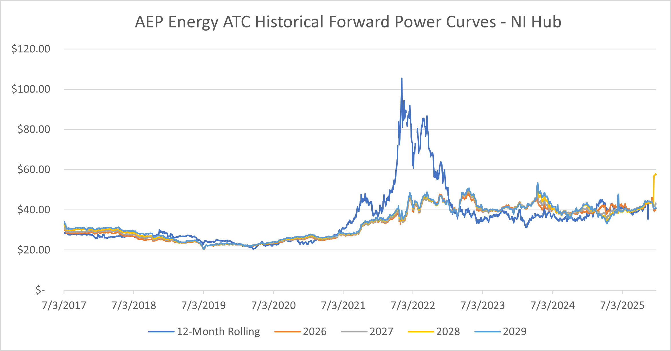 *Graph is for illustrative purposes only. NI Hub priced in Eastern Standard Time (EST)