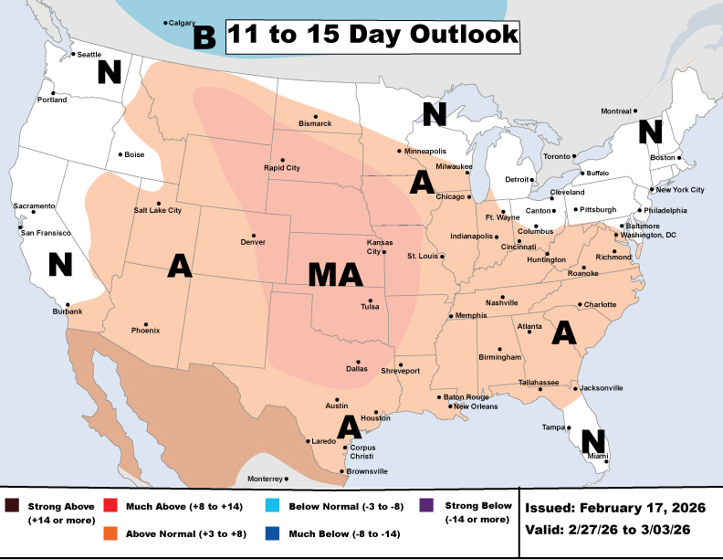 Friday, February 13 – Up at the front of the curve, prices moved higher on expectations of colder weather at the end of the month and into early March. Beyond that, the curve held steady. Power prices stayed relatively calm, with a mild forecast for the ERCOT region.