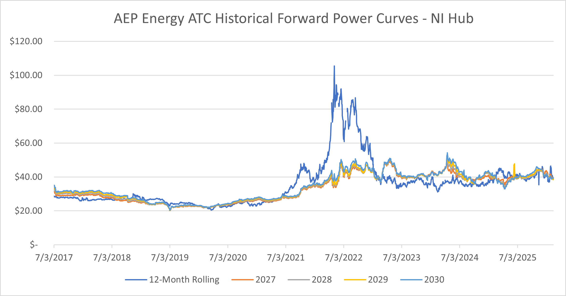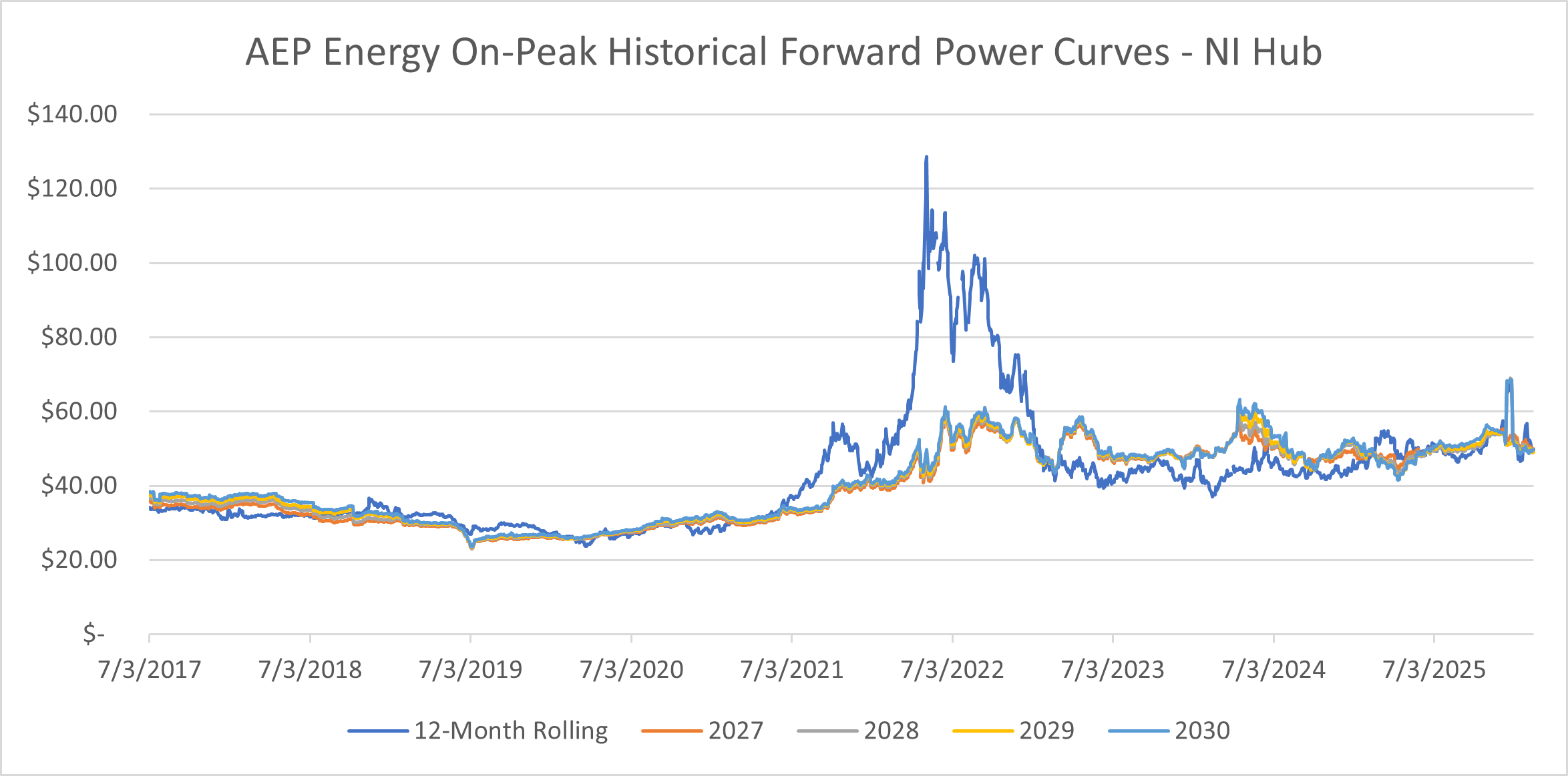 NI Hub On-Peak Forward Price Trend Analysis