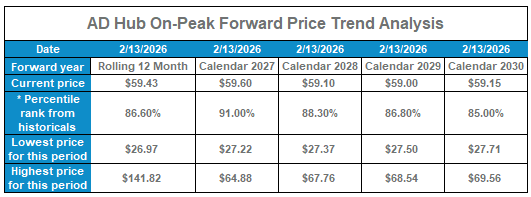 AD Hub On-Peak Forward Price Trend Analysis