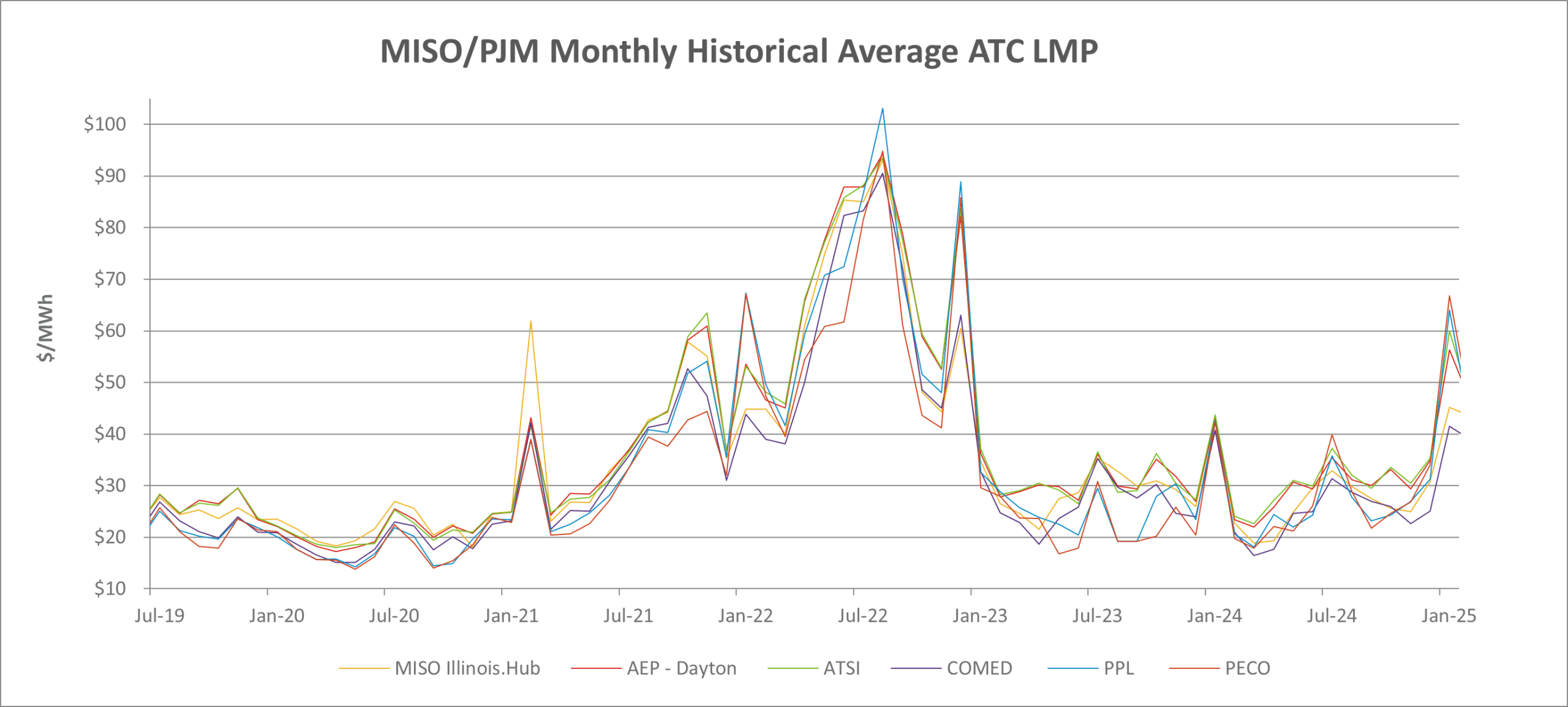 MISO/PJM Monthly Historical Around-the-Clock (ATC) LMP