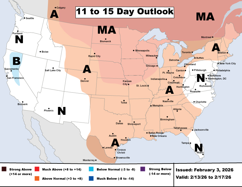 Monday, February 2 – Power and natural gas prices moved lower to start the week after updated weekend weather models removed roughly 35 degrees from the balance of the month forecast. Natural gas for the March contract fell more than $1 on the day, leading to a broad decline in power prices.