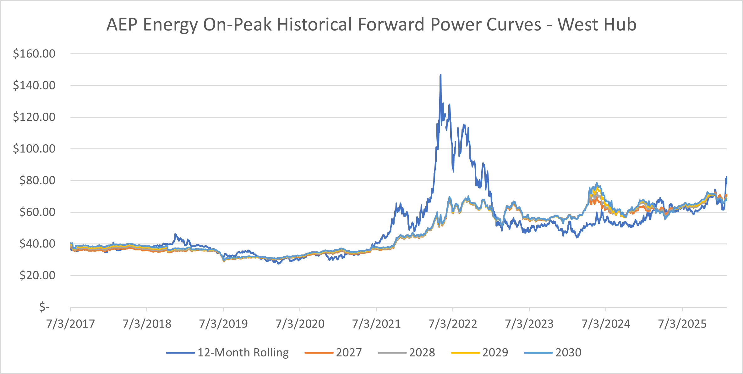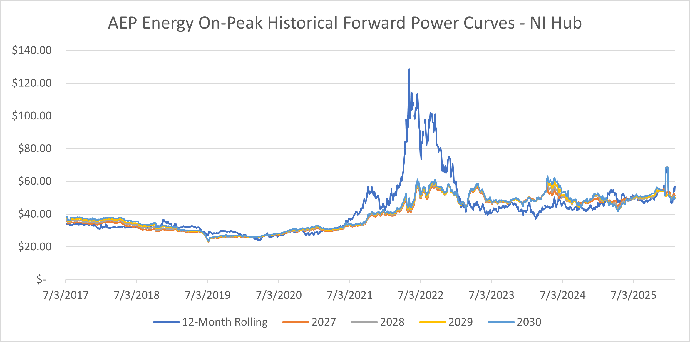 AEP Energy does not guarantee the accuracy, timeliness, suitability, completeness, freedom from error, or value of any information herein. The information presented is provided “as is”, “as available”, and for informational purposes only, speaks only to events or circumstances on or before the date it is presented, and should not be construed as advice, a recommendation, or a guarantee of future results. AEP Energy disclaims any and all liabilities and warranties related hereto, including any obligation to update or correct the information herein. Summaries and website links included herein (collectively, “Links”) are not under AEP Energy’s control and are provided for reference only and not for commercial purposes. AEP Energy does not endorse or approve of the Links or related information and does not provide any warranty of any kind or nature related thereto. Forward-looking statements contained herein are based on forecasted or outlook information (including assumptions and estimations) but any such statements may be influenced by innumerable factors that could cause actual outcomes and results to be materially different from those anticipated. As such, these statements are subject to risks, uncertainties, fluctuating market conditions, and other factors that may cause actual results to differ materially from expectations and should not be relied upon. Whether or how the customer utilizes any such information is entirely its responsibility (for which it assumes the entire risk).