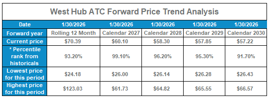 *Percentile rank from historicals represents the relation of current price and how it compares to historical pricing. For Calendar 2028, 96.8% indicates that the current price is lower than 3.2% of historical pricing dating back to July 2017.
