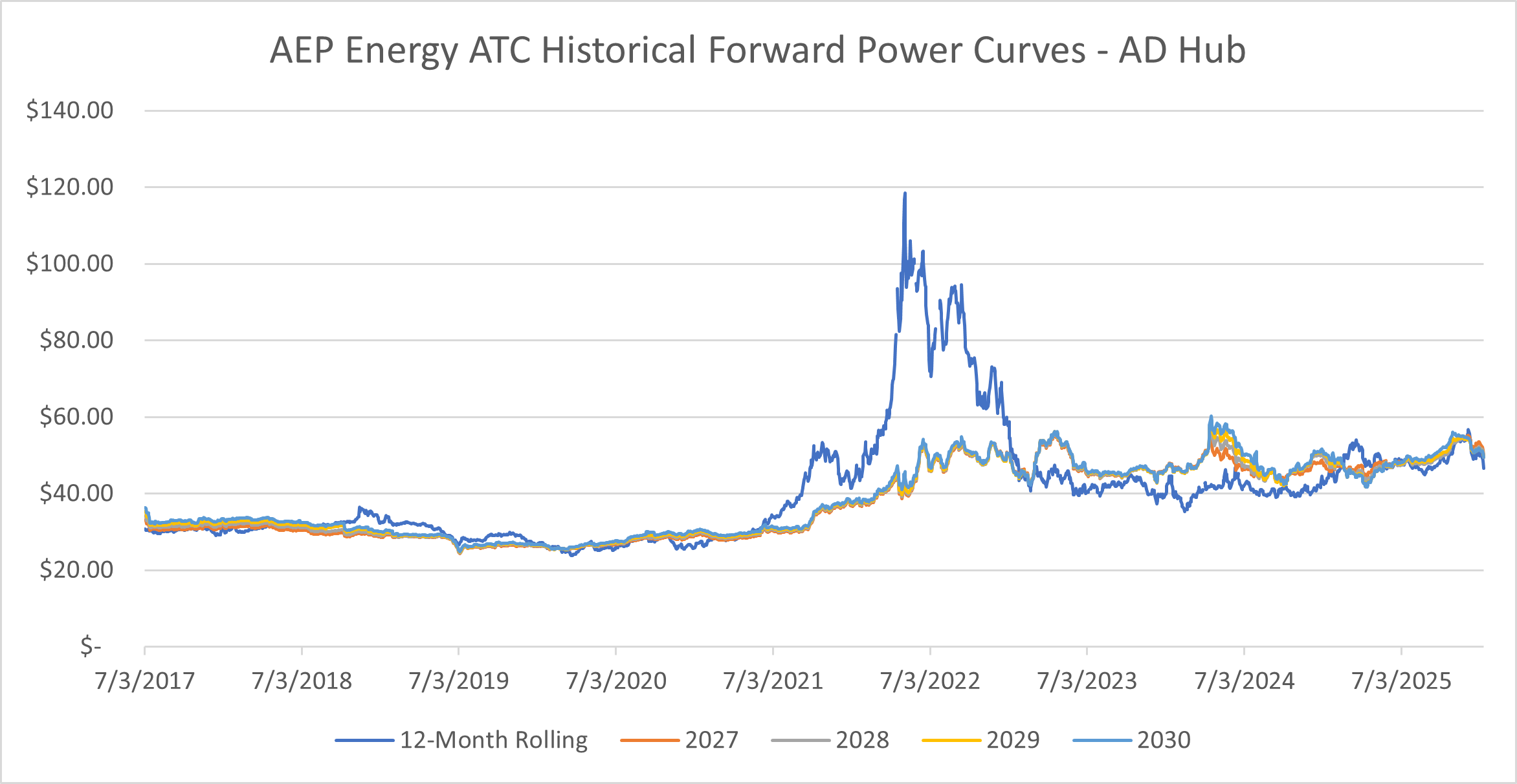 AD Hub On-Peak Forward Price Trend Analysis
