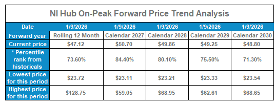 NI Hub On-Peak Forward Price Trend Analysis