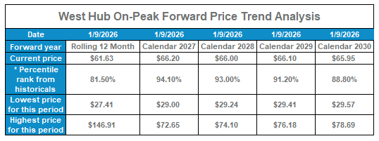 West Hub On-Peak Forward Price Trend Analysis