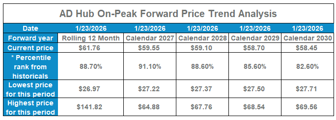 AD Hub On-Peak Forward Price Trend Analysis