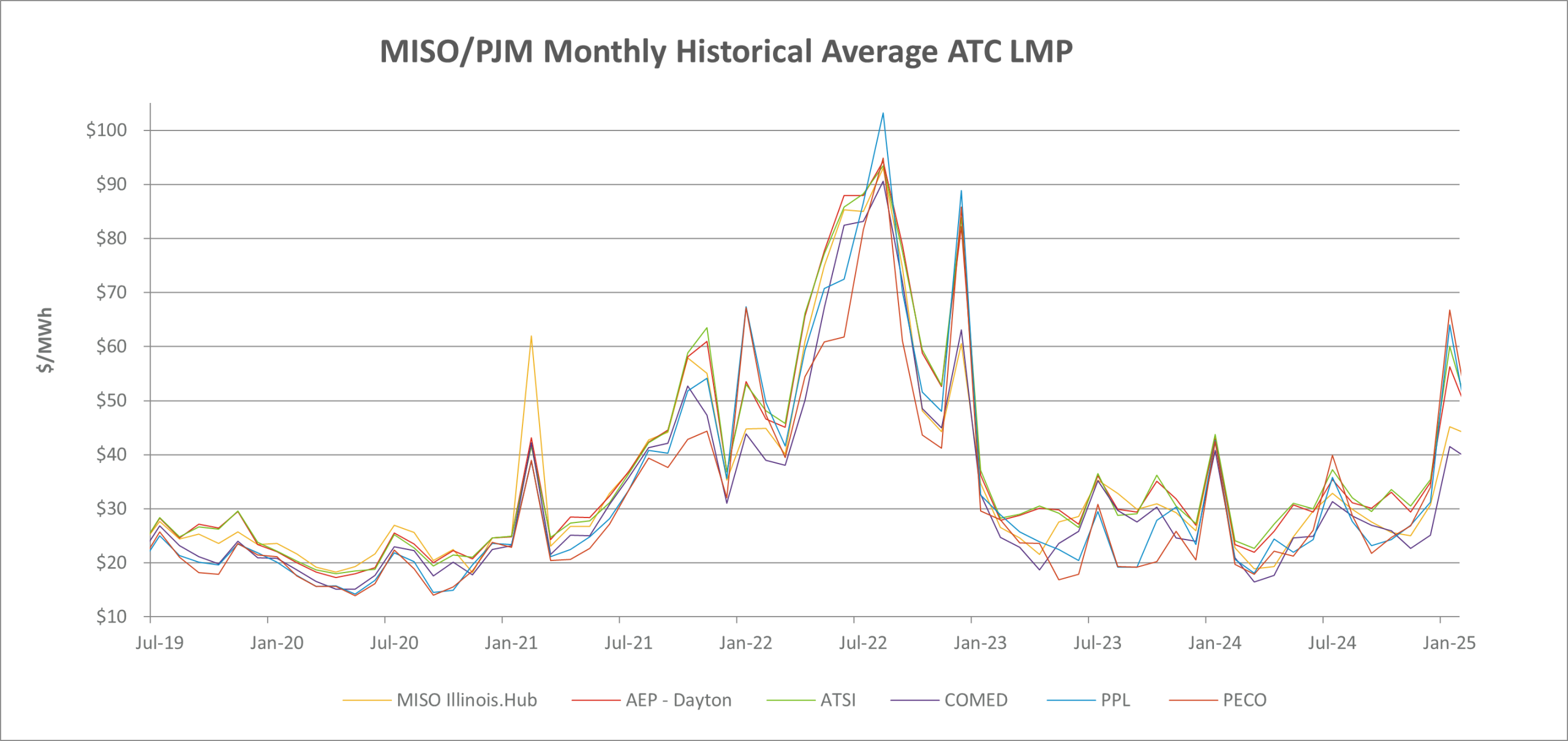 MISO/PJM Monthly Historical Around-the-Clock (ATC) LMP