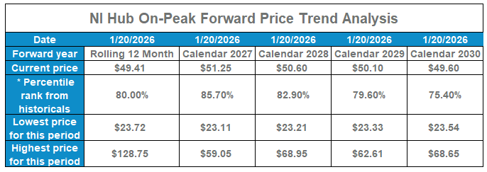 NI Hub On-Peak Forward Price Trend Analysis