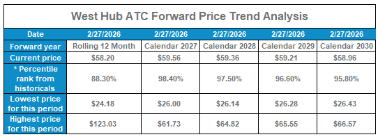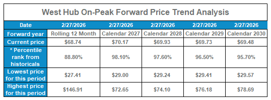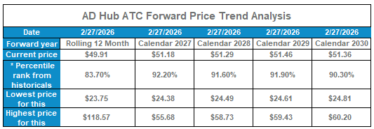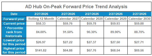 *Percentile rank from historicals represents the relation of current price and how it compares to historical pricing. For Calendar 2028, 97.6% indicates that the current price is lower than 2.4% of historical pricing dating back to July 2017.