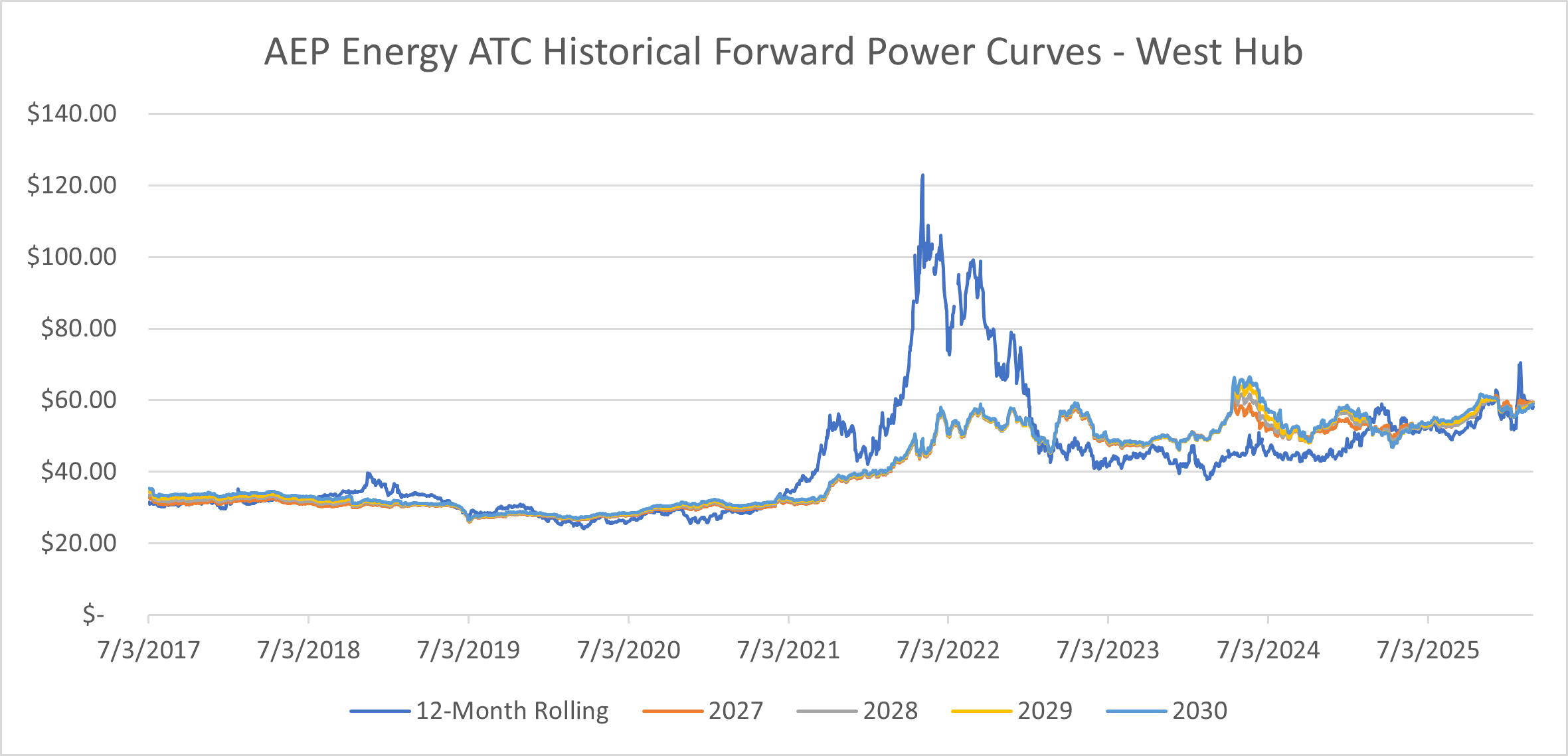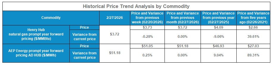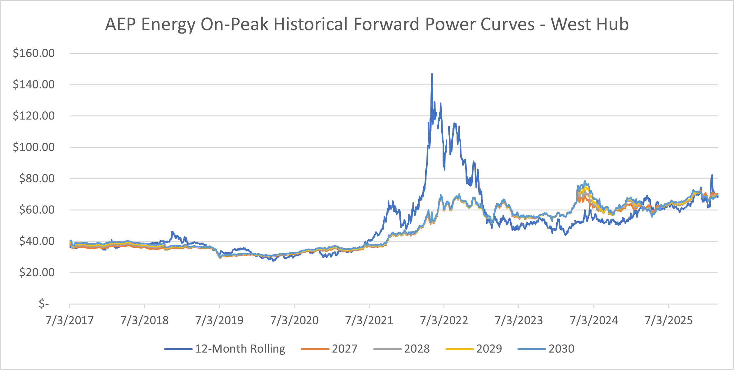 AEP Energy does not guarantee the accuracy, timeliness, suitability, completeness, freedom from error, or value of any information herein. The information presented is provided “as is”, “as available”, and for informational purposes only, speaks only to events or circumstances on or before the date it is presented, and should not be construed as advice, a recommendation, or a guarantee of future results. AEP Energy disclaims any and all liabilities and warranties related hereto, including any obligation to update or correct the information herein. Summaries and website links included herein (collectively, “Links”) are not under AEP Energy’s control and are provided for reference only and not for commercial purposes. AEP Energy does not endorse or approve of the Links or related information and does not provide any warranty of any kind or nature related thereto. Forward-looking statements contained herein are based on forecasted or outlook information (including assumptions and estimations) but any such statements may be influenced by innumerable factors that could cause actual outcomes and results to be materially different from those anticipated. As such, these statements are subject to risks, uncertainties, fluctuating market conditions, and other factors that may cause actual results to differ materially from expectations and should not be relied upon. Whether or how the customer utilizes any such information is entirely its responsibility (for which it assumes the entire risk).