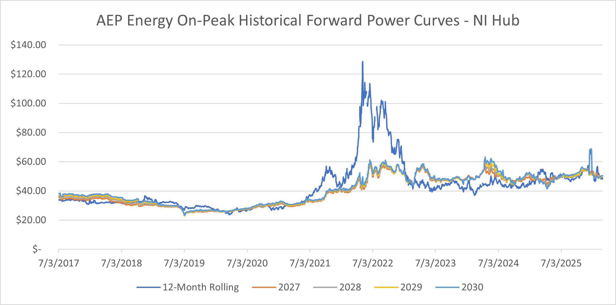 *Graph is for illustrative purposes only. NI Hub priced in Eastern Standard Time (EST)