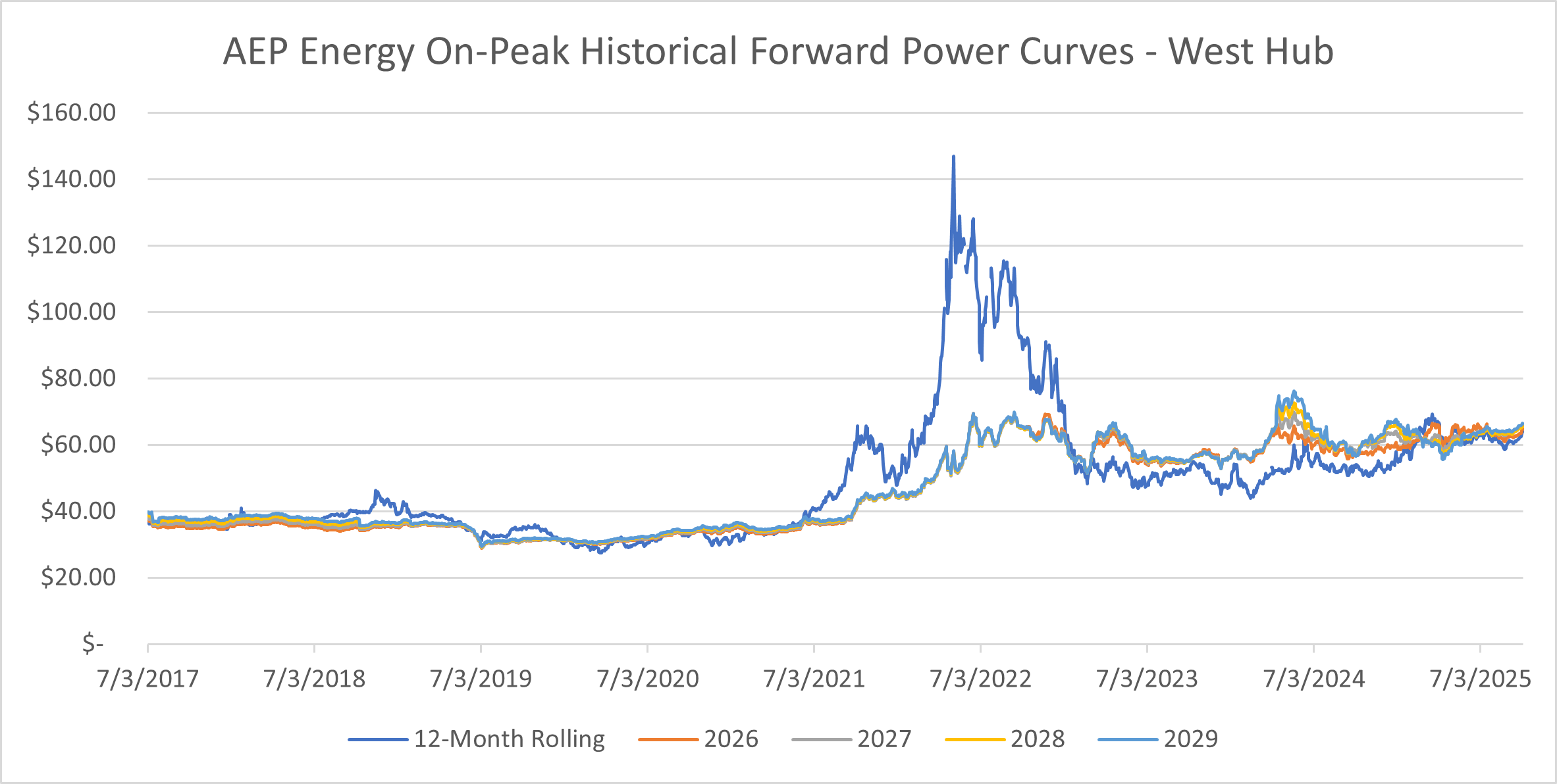 AEP Energy does not guarantee the accuracy, timeliness, suitability, completeness, freedom from error, or value of any information herein. The information presented is provided “as is”, “as available”, and for informational purposes only, speaks only to events or circumstances on or before the date it is presented, and should not be construed as advice, a recommendation, or a guarantee of future results. AEP Energy disclaims any and all liabilities and warranties related hereto, including any obligation to update or correct the information herein. Summaries and website links included herein (collectively, “Links”) are not under AEP Energy’s control and are provided for reference only and not for commercial purposes. AEP Energy does not endorse or approve of the Links or related information and does not provide any warranty of any kind or nature related thereto. Forward-looking statements contained herein are based on forecasted or outlook information (including assumptions and estimations) but any such statements may be influenced by innumerable factors that could cause actual outcomes and results to be materially different from those anticipated. As such, these statements are subject to risks, uncertainties, fluctuating market conditions, and other factors that may cause actual results to differ materially from expectations and should not be relied upon. Whether or how the customer utilizes any such information is entirely its responsibility (for which it assumes the entire risk).