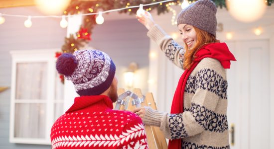 • Ensure outside decorations are for outdoor use and fasten lights securely to your home or trees. If using hooks or nails outside, make sure they are insulated to avoid an electrocution or fire hazard.