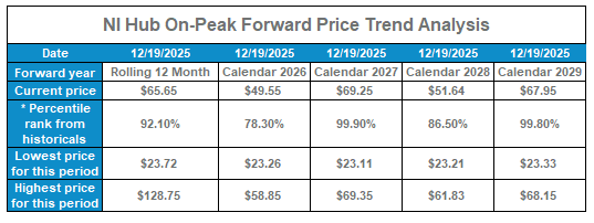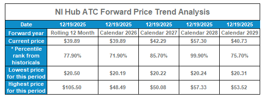 *Percentile rank from historicals represents the relation of current price and how it compares to historical pricing. For Calendar 2027, 99.9% indicates that the current price is lower than 0.1% of historical pricing dating back to July 2017.Â